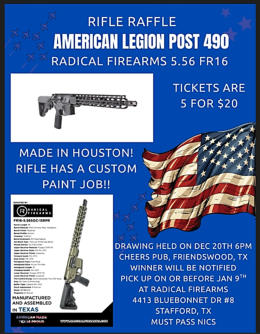Post 490 host many events throughout the year. Post events include AirShow viewing event, Crawfish Boil, Holiday Parties, Hall Rental events,